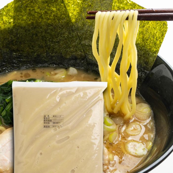 数種類の豚ガラをメインに鶏ガラを加えて炊き上げた家系ラーメンスープ。チー油を合わせれば本格家系スープに。