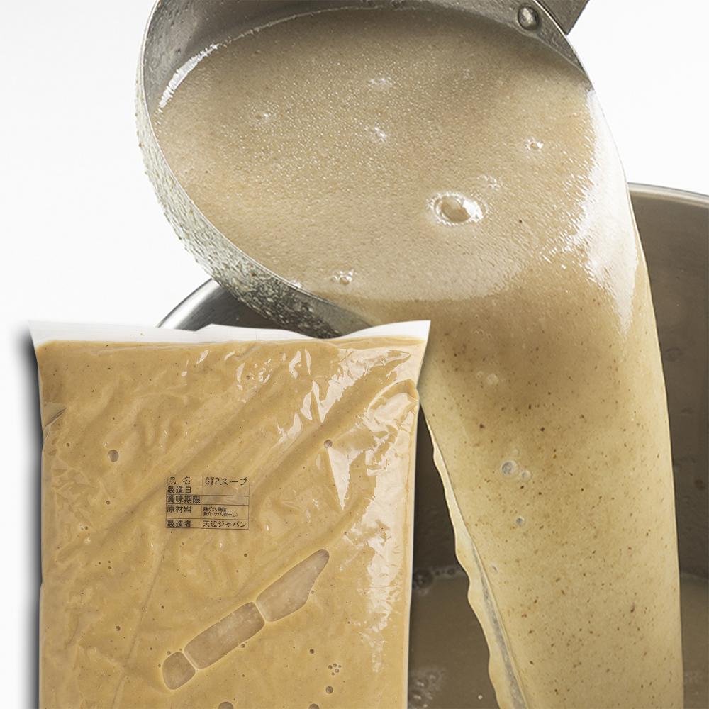 大量の鶏ガラとモミジを強火で炊き上げ、煮干しとサバ節で香りづけした濃厚なスープです。
